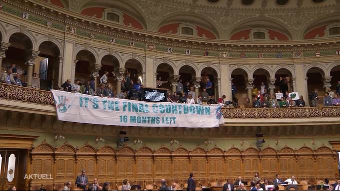 Dutzende Klimaaktivisten störten am Donnerstag die Nationalratssession. Die Klimaschützer entrollten ein Banner und sangen lautstark „The Final Countdown“, um auf die Dringlichkeit des Klima-Problems aufmerksam zu machen.