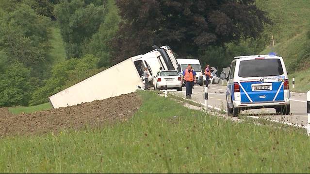 WiedergabelisteSchlagzeilen1 Min34-jähriger Schweizer erschossen2 MinLastwagen überschlagen1 MinSwissnews1 MinWangenstrasse wegen schwerem Unfall gesperrt1 MinNach spektakulärem Ausbruch verhaftet2 MinDas grösste Problem an der Badenfahrt1 MinBarcelona-Täter vermutlich erschossen2 MinWorldnews1 MinMüllerBräu im Ausnahmezustand3 MinAktuell — Montag, 21. August 2017 — Ganze Sendung13 MinLastwagen überschlagenAuf der Staffelegg bei Densbüren, verlor ein LKW-Fahrer die Kontrolle über sein Fahrzeug und kam von der Strasse ab. Der Lenker blieb unverletzt.