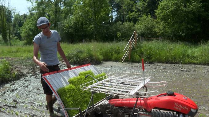 Es ist eine Maschine, die das Reissetzen um einiges einfacher macht. Früher hat der Aargauer Landwirt Lukas Neuhaus alles von Hand gemacht. Jetzt hilft ihm eine asiatische Reissetz-Maschine bei dieser Arbeit.