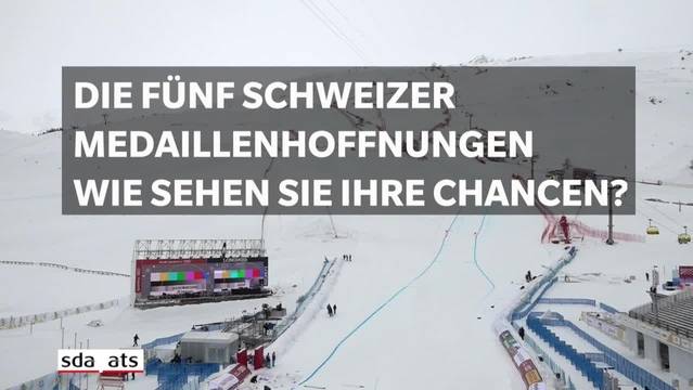 Wiedergabeliste«Es geht mir gut»2 Min«Gute Medaillenchancen in neun von elf…3 Min«Eine Garantie auf eine Medaille gibt es nicht»2 Min«Eine Garantie auf eine Medaille gibt es nicht»Die fünf Schweizer Medaillenhoffnungen: Wie sehen sie ihre Chancen? Lara Gut, Wendy Holdener, Beat Feuz, Carlo Janka und Patrick Küng.